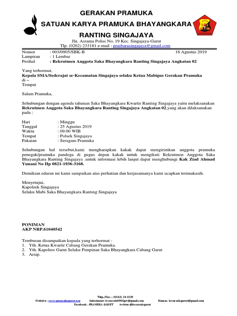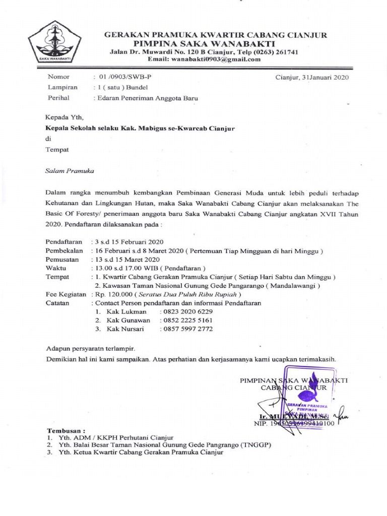 Surat Edaran Penerimaan Anggota Baru Saka Wanabakti Cabang Cianjur Tahun 2020 Pdf